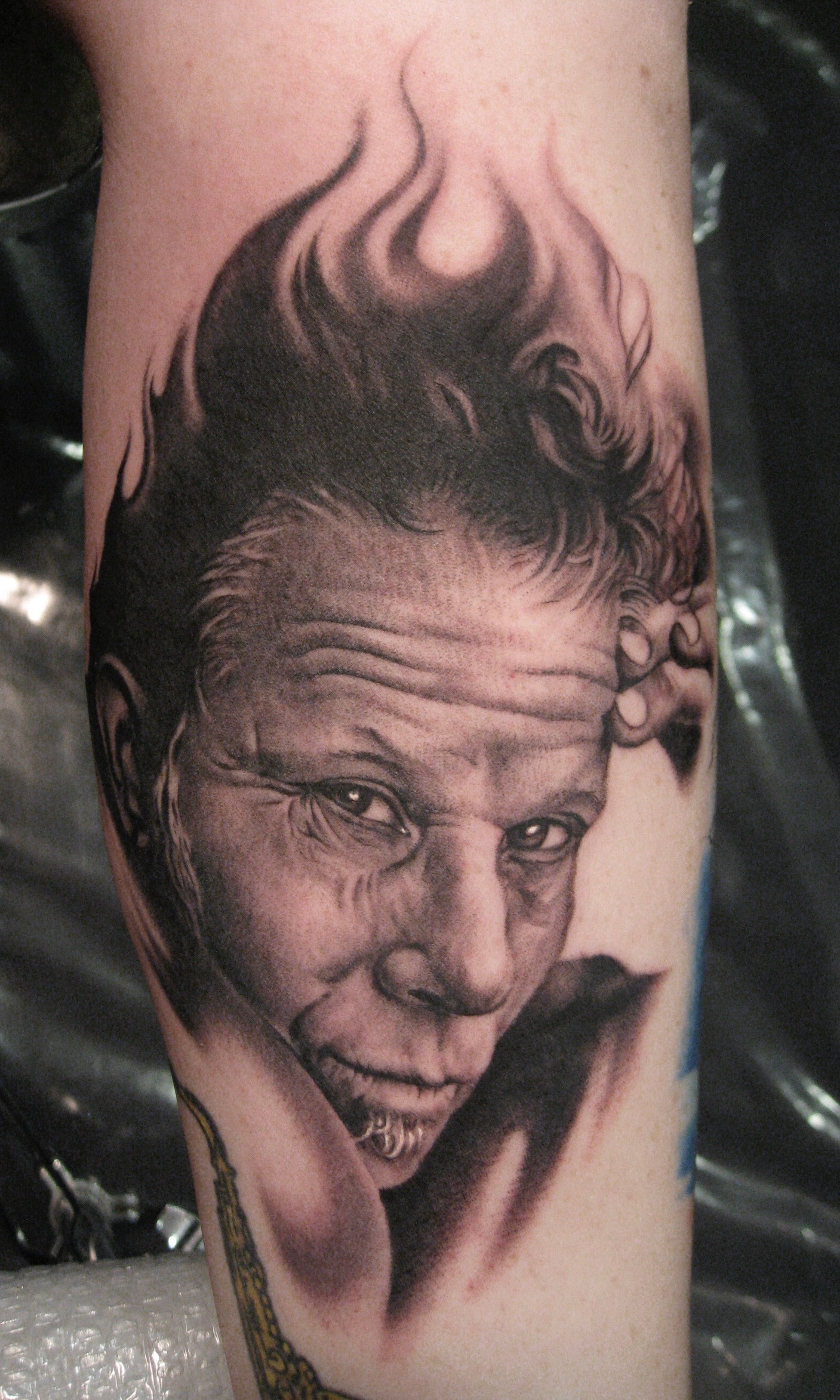 Bob started tattooing in 1997 at the age of 34. He apprenticed at Eternal Tattoos in Detroit. Over the last 28 years, he’s traveled the world, working at tattoo conventions and doing guest spots. He’s been featured in dozens of tattoo and horror magazines. He was a guest artist on the TV shows LA Ink and London Ink, and a guest judge on Ink Master and Tattoo Titans. He’s won hundreds of awards and tattooed many bands including Slayer, Exodus, Kid Rock, Tesla, Anthrax, Testament, Death Angel, Dream Theater, Municipal Waste, Damageplan, Hellyeah, to name a few. He’s also played guitar in bands for the past 47 years, and is currently playing with Mario Barth & About Kings, and Upside Down, a DOWN tribute band.