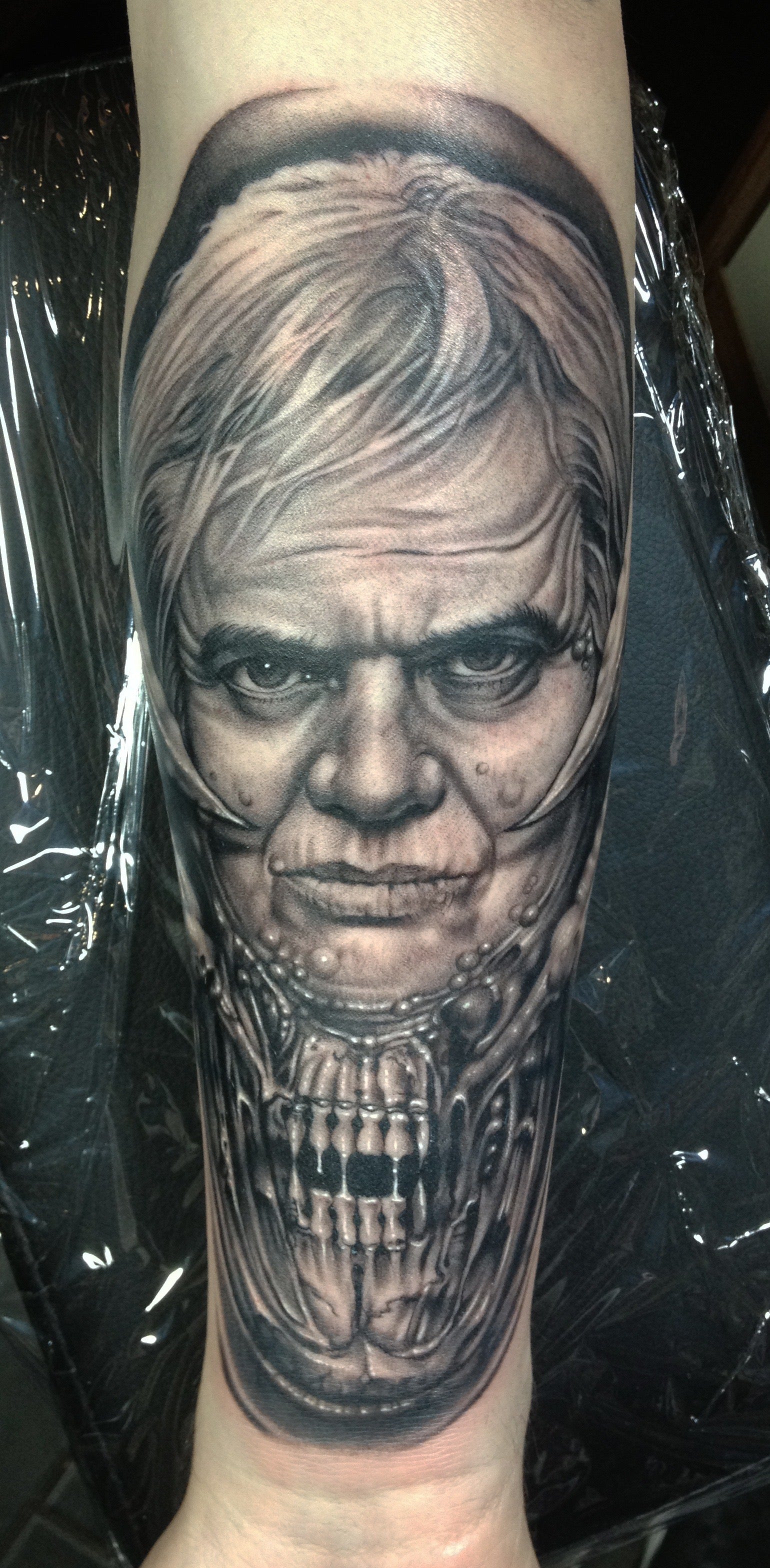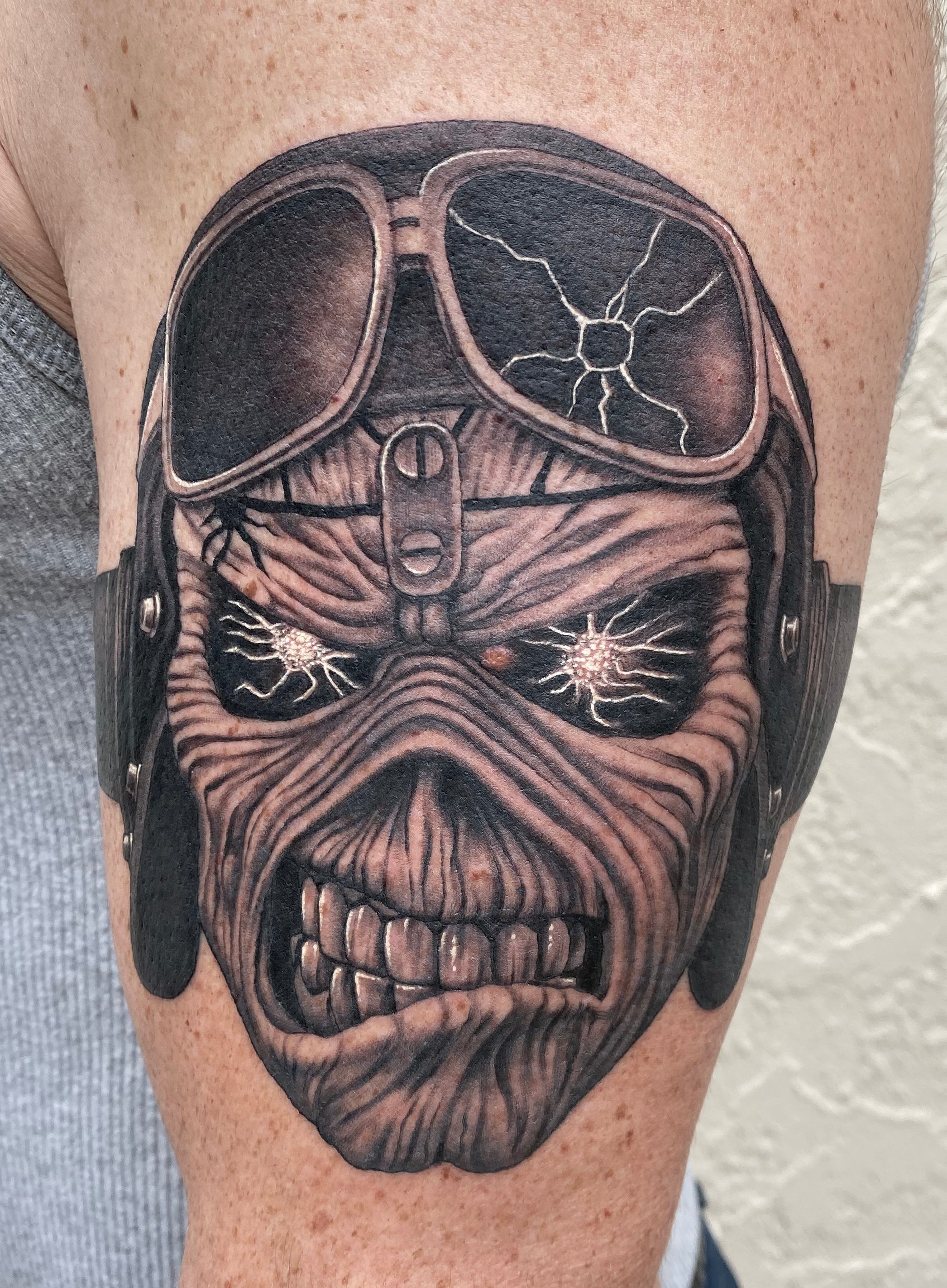 Bob started tattooing in 1997 at the age of 34. He apprenticed at Eternal Tattoos in Detroit. Over the last 28 years, he’s traveled the world, working at tattoo conventions and doing guest spots. He’s been featured in dozens of tattoo and horror magazines. He was a guest artist on the TV shows LA Ink and London Ink, and a guest judge on Ink Master and Tattoo Titans. He’s won hundreds of awards and tattooed many bands including Slayer, Exodus, Kid Rock, Tesla, Anthrax, Testament, Death Angel, Dream Theater, Municipal Waste, Damageplan, Hellyeah, to name a few. He’s also played guitar in bands for the past 47 years, and is currently playing with Mario Barth & About Kings, and Upside Down, a DOWN tribute band.